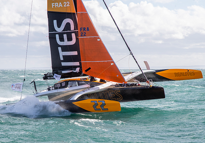 Réalités est un Ocean Fifty construit dans les moules de Planet Warriors, ce dernier mis à l’eau en 2020 et vainqueur de la Route du Rhum 2022 aux couleurs de Koesio.
