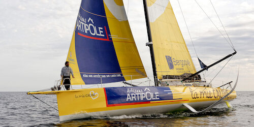 Renamed Banque Populaire VI in 2011 with Armel Le Cléac’h at the helm, she finished third in the Transat Jacques Vabre and second in the Vendée Globe, arriving just a few hours after her sistership Macif.